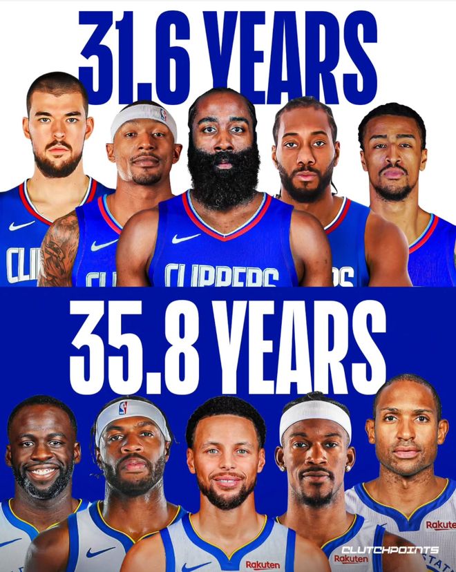 除此之外勇士队也是五老阵容:库里37岁、巴特勒36岁、追梦35岁、霍福德39岁、希尔德33岁,这5人合计180岁,平均年龄35.8岁,就算库明加之后可以先发,勇士队也将是平均年龄最年长的球队。