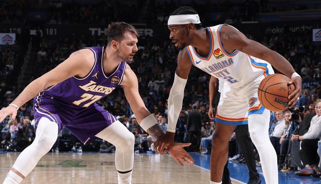 北京时间11月13日,NBA常规赛,雷霆坐镇主场迎战湖人。本场比赛之前,湖人8胜3负排名西部第3;虽然说湖人开局战绩很好,但总感觉他们在场上的统治力没有那么强,赢球基本靠东契奇和里夫斯爆种;这俩人一状态不好,球队就会快速崩盘。此外,湖人的投篮命中率联盟第一,但防守效率却在联盟倒数,防守还是有问题。