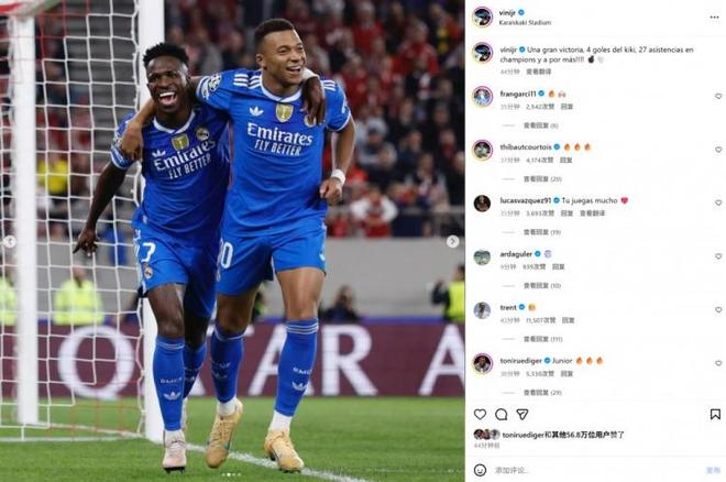 除罗德里戈外,维尼修斯的状态也不理想,欧冠前他已连续7场没有进球或助攻,这是近四年来最长的进球荒。好在,VS奥林匹亚他完成了双助攻,帮助姆巴佩实现了大四喜,缓解了自己的问题,没有像罗德里戈那样。此外,比赛打出了14次过人、8次成功成绩,也是不俗的。